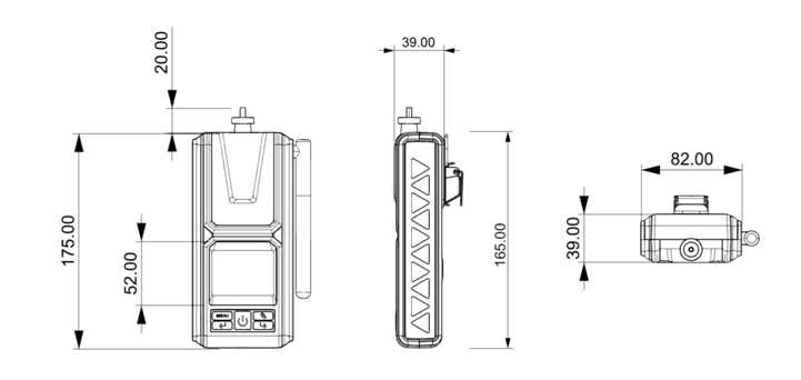 便攜式六合一氣體檢測儀產品尺寸圖