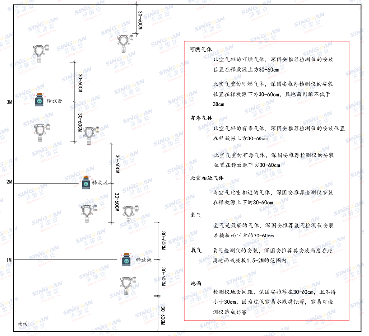 安裝方式 | 靠墻面安裝(離氣體泄漏源最近的地方) | |