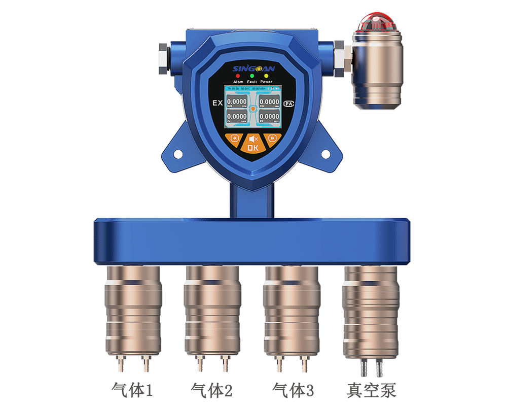 SGA-501B/503B/505B系列固定一體泵吸式多合一氣體檢測儀是深國安(股票代碼:681434)運用十多年氣體檢測儀生產經驗,專門針對多組合氣體檢測需求所研發生產的一款多參數氣體檢測儀表;產品可根據客戶需要任意搭配1-5種氣體組合,氣體種類不限,檢測量程不限;內置一體化真空泵,可以直接泵吸采樣;12-30V供電,24小時在線監測,超標自動聲光報警,還可通過內置繼電器自動聯動設備,排除險情;并支持4-20mA電流信號或RS485數字信號遠傳,溫濕度、顆粒物檢測功能選配;