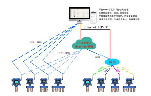 深國安總經理張繼國介紹,氣體報警器安裝現場環境,報警主機布設在值班室,可通過GPRS無線組網監測數據上傳物聯網平臺,實時監管危化品現場每個區域環境風險、并自動預警、上報、聯動應急指揮。有效解決傳統監管難度大、人工排查易疏漏、事前預防能力差和響應慢等痛點。